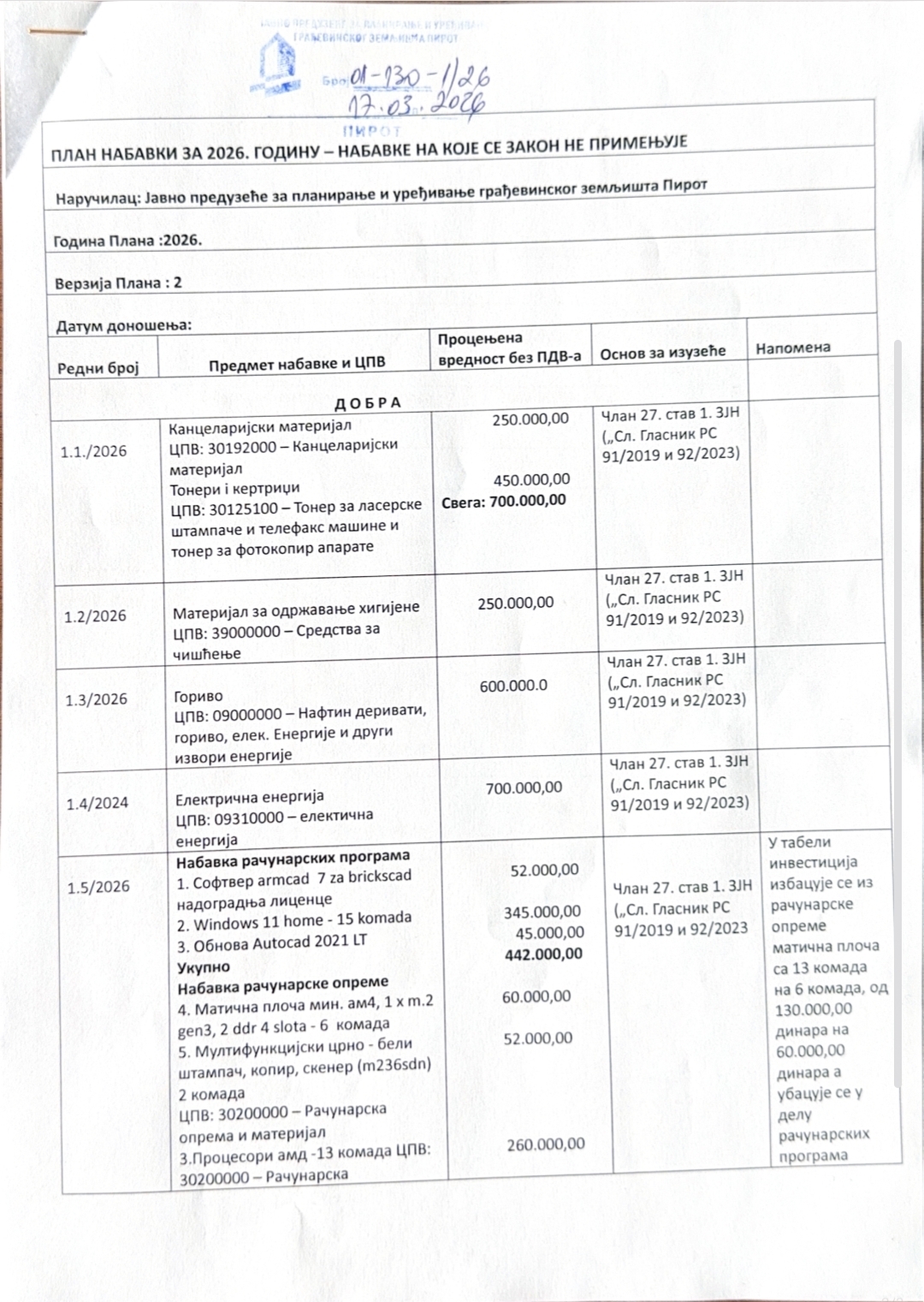 STRATEGIJA UPRAVLJANJA RIZICIMA JP ZA PLANIRANJE I UREDJIVANJE GRADJ.ZEMLJIŠTA PIROT Model Registar rizika Model-OBRAZAC IZVESTAJA- Registar rizika